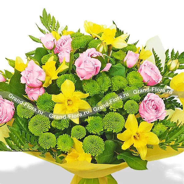 Весенний бриз - букет из нарциссов и хризантем